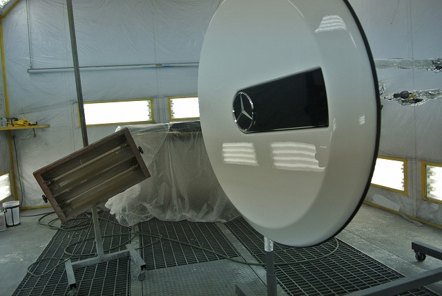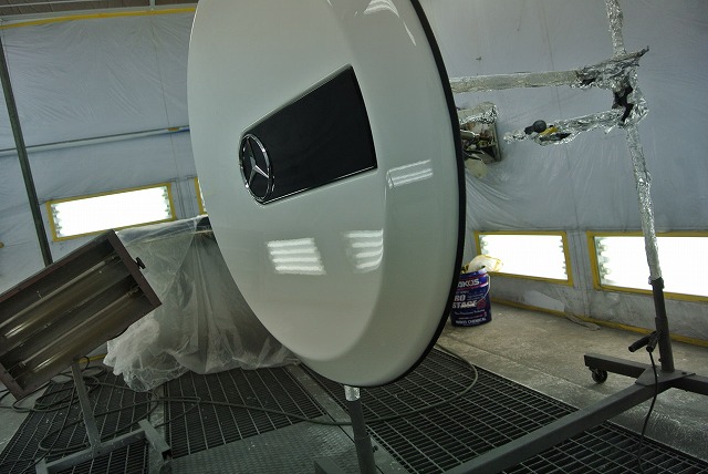 ゲレンデヴァーゲンスペアタイヤカバー鈑金塗装修理のご依頼になります。