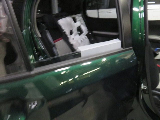 ベルトモールはガラスに傷が付かない様に保護して外しています。
