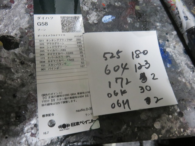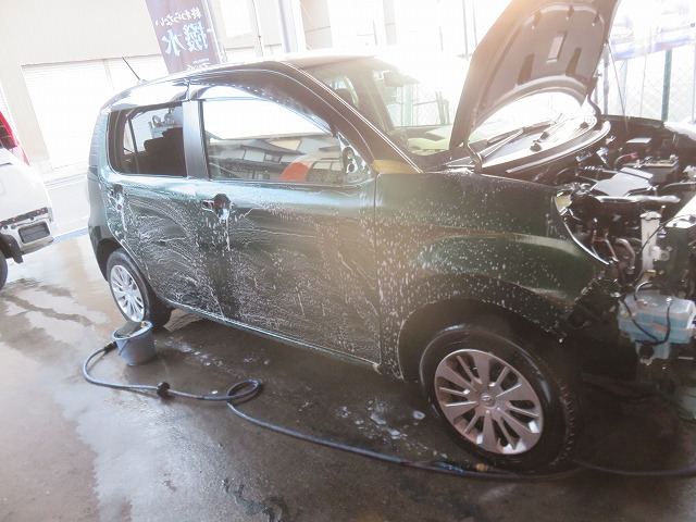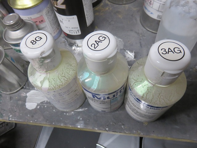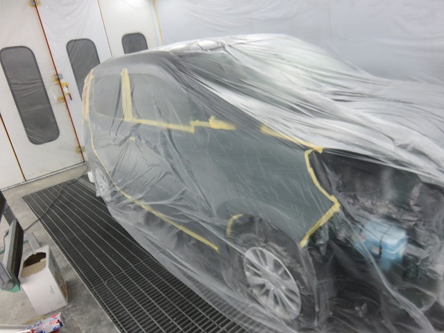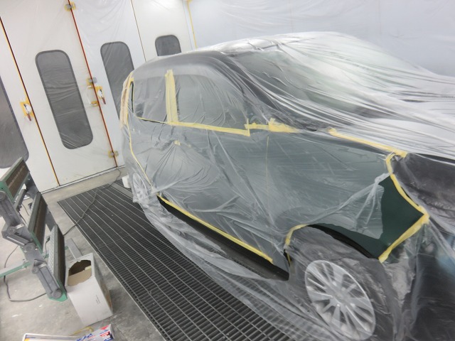 塗装の為の下地処理。コーティング施工車の為念入りに足付け。