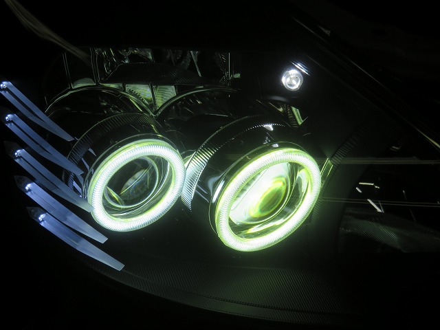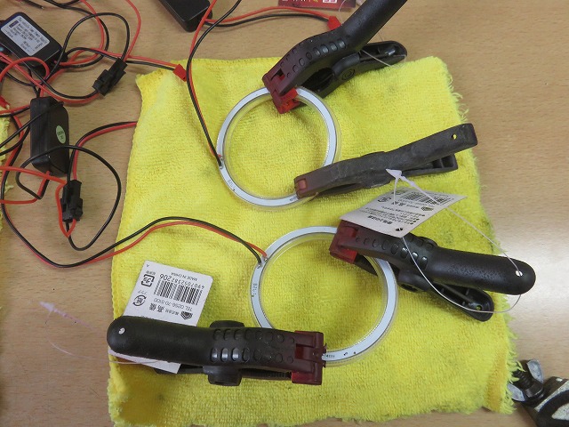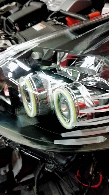CCFLイカリング不良交換のご依頼になります。CCFL取り付けによる車両火災も起きているとのことですので、CCFL取付カスタムヘッドランプの方はLEDイカリングへの変更または点灯させない処理が必要ではないかと思います。