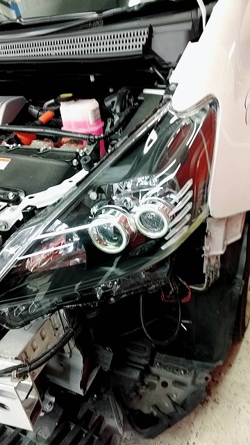 プリウスαカスタムヘッドランプ修理のご依頼です。