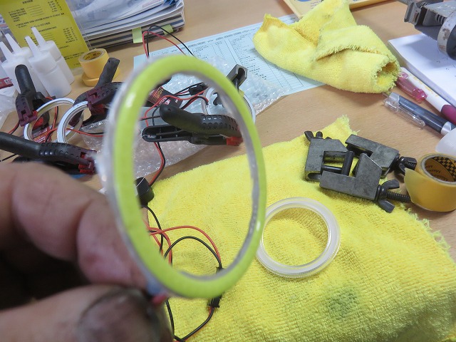 シリコンシーラーにてバラバラの新品LEDイカリングを組み付けます。