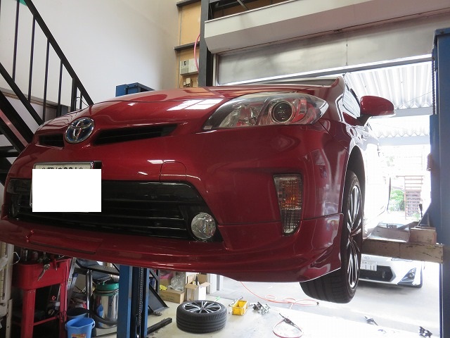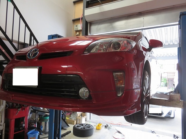 30系プリウス ブレーキを踏みながらの低速走行時異音修理のご依頼です。車歴は4年程度ですが10万キロ越え車両。