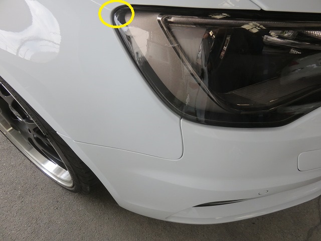 画像黄色〇部分のフェンダー部分に隙間が見られました。ここの隙間を無くすにはヘッドランプを外方向