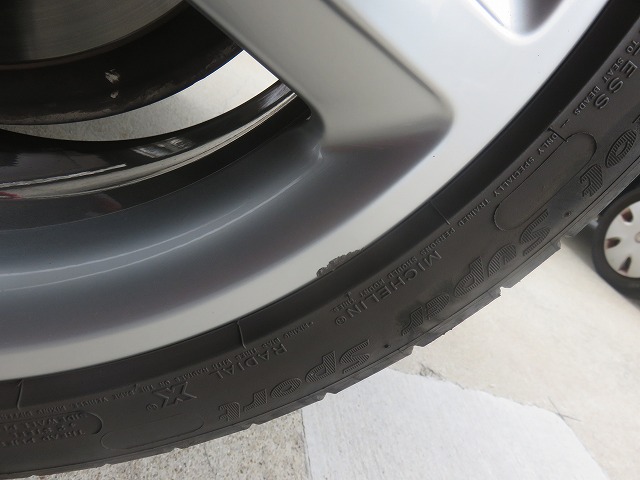 アウディA4はとても車高が低いお車なので、もちろんフル純正ノーマル車両ですが、タイヤの内側が減りやすいのです。オーナー様もタイヤの溝を時々見ておりましたが、リフトアップしたついでにフロントタイヤを確認しましたら内側ワイヤー出てました。急遽タイヤ交換とホイール塗装のご依頼をいただきました。