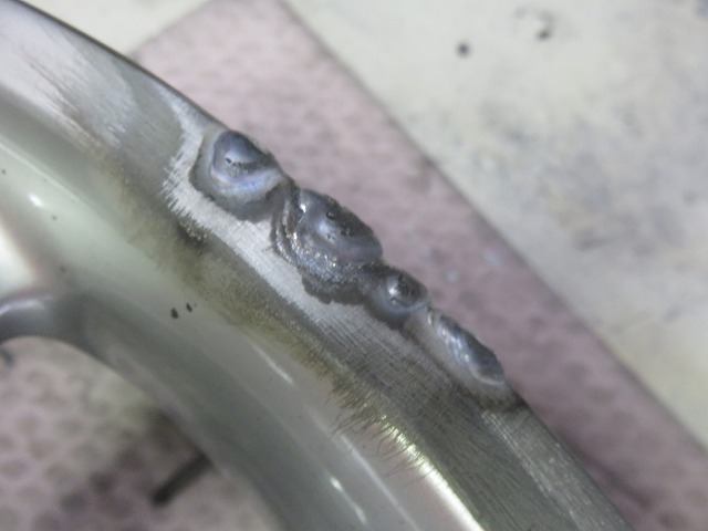ガリ傷が深いところはアルミ溶接にて充填。 アルミパテ・ファイバーパテ等で対応も可。
