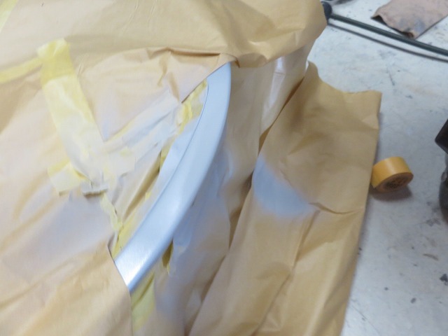 小傷が多すぎましたので全面平滑にして、はじめにシルバーを塗装。そしてクリアー塗装。