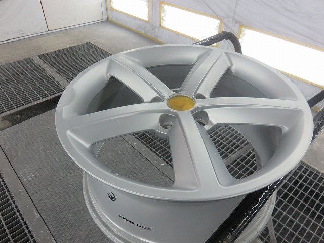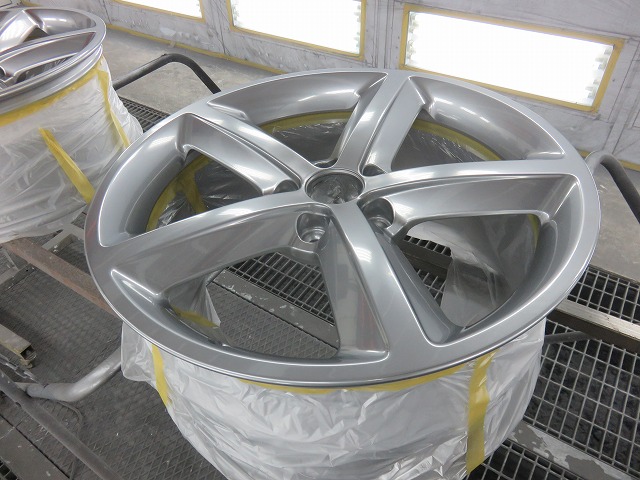 ハイパーシルバーの調色は、時間を要します。デュポンデーターでは、ホイール全塗装。すなわち