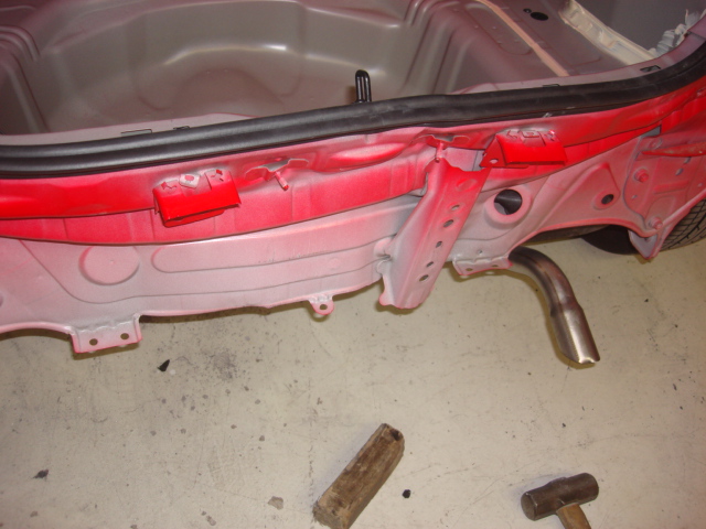 いきなりバックパネル着いてます。そしてシーリングです。波型シーラーは新車時のシーラーを丁寧に剥がし交換パネルにシーラーにてくっ付けました。