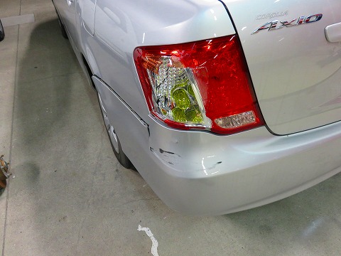 左クォーターパネル修理、リヤバンパー取替、左テールランプ取替です。