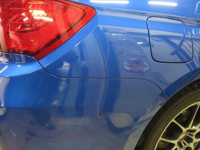 インプレッサフロントバンパーとフェンダーの立て付け調整、リヤバンパーの隙間調整のご依頼になります。非常に多い案件でございます。神奈川県よりお越しくださいました。