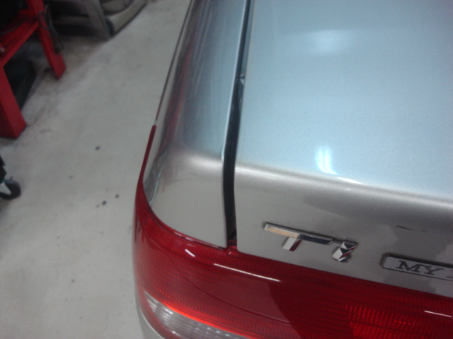 早速修正。クランプ跡付かないように細工してあります。ここひっぱるとトランクとクォーターパネルのすき間ちじまるんです。反対側も同じ様に修正。トランクも手板金。その他もろもろ修正。修正してみたら結構中に押されていました。