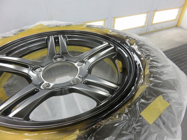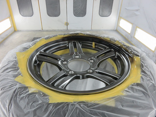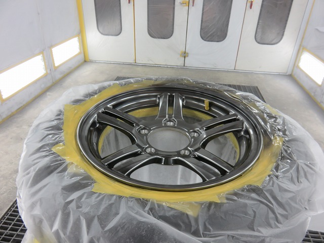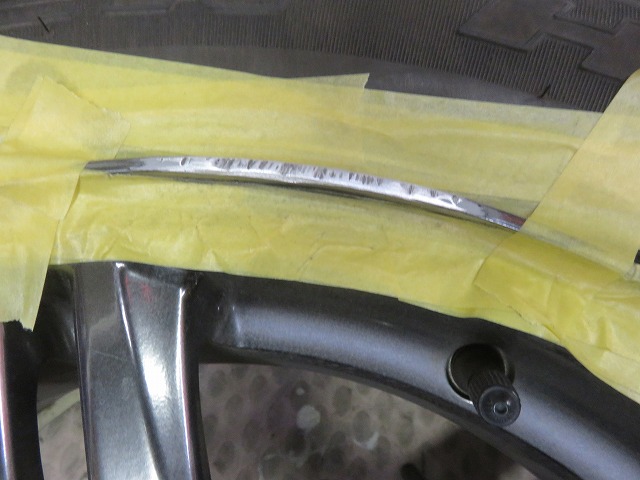 今回は損傷部パテ盛り作業。 タイヤを外してのアルミ溶接作業、パテなし作業も選択可。