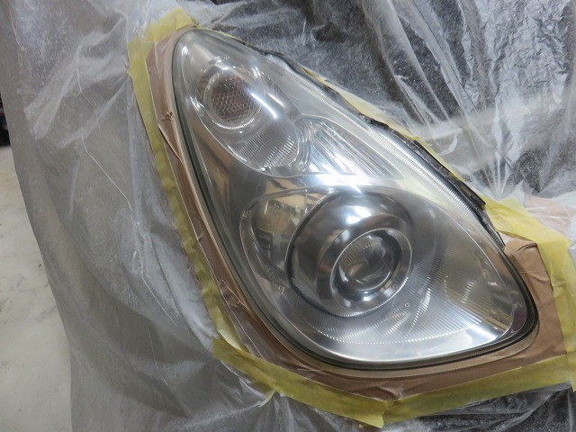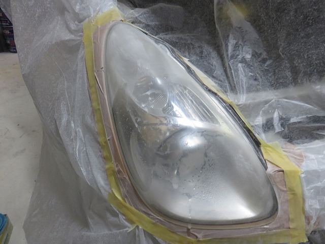 ここから脱脂後スリーエムヘッドライトコーティングを施工