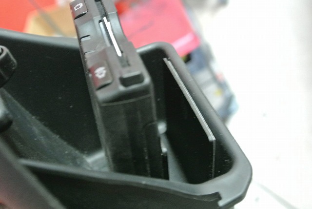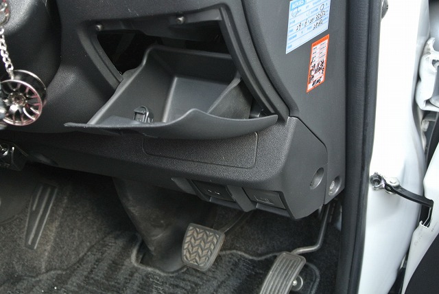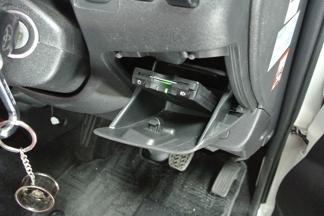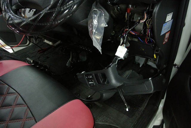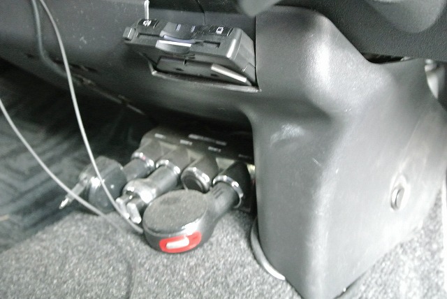 ETCを右側小物入れ付近に配線をもっていき・・・。小物入れのパネル周辺外して
