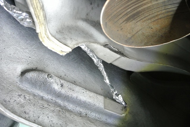 配線をつなぎ合わせアルミテープで配線を保護マフラーより上の方に配線移設。マフラーの排気が直接