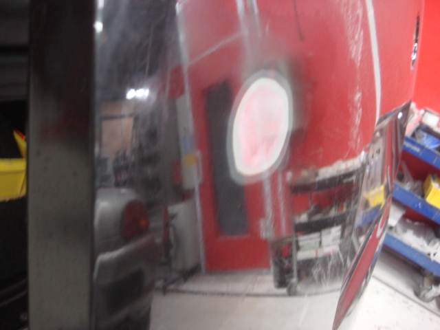 裏に補強板にスポット止めされていますので。鉄板だけでの面だしが困難ですのでうっすらパテを付けて形成後サフェーサー処理いたしました。