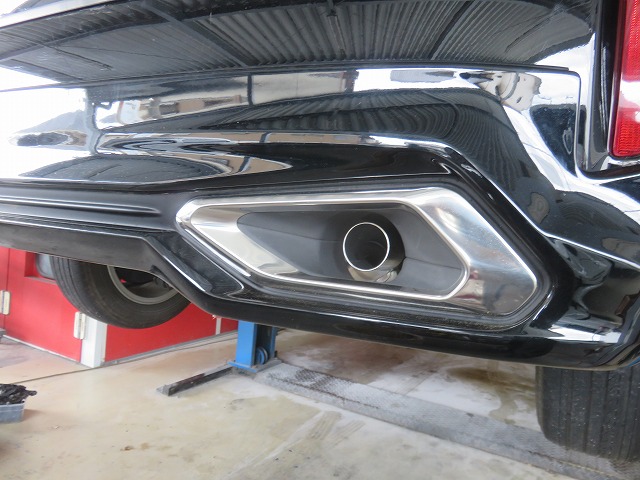 オーナー様も取付時立ち合いのもと、代車もご用意してましたが、普段見ない光景でしたので、面白かったらしく見学されてました。純正リヤバンパーエアソーで切断。リヤマフラーパイプエアソーでカット