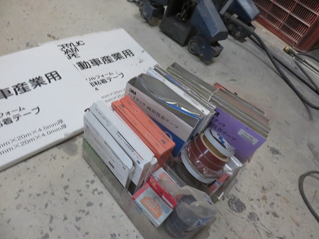 当社は両面テープの在庫多数。間に合わせのような仕事はしません。両面テープの幅・厚みを合わせて使用します。両面テープを貼りつける前にプライマー処理を欠かさず行います。そのことにより安易に両面テープが剥がれなくなります。