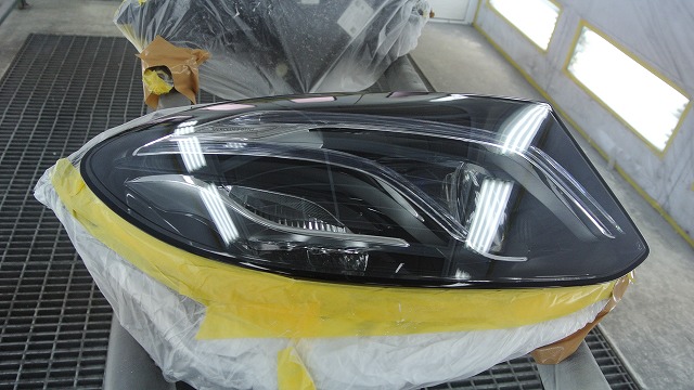 メルセデス E230 ヘッドランプ 飛び石傷 修理のご依頼になります。オーナー様名古屋市からお越しくださいました。