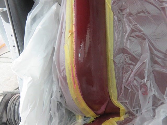 プラッチック部はガスプライマーにて密着不良を回避。内装用専用2液硬化型塗料で塗装。