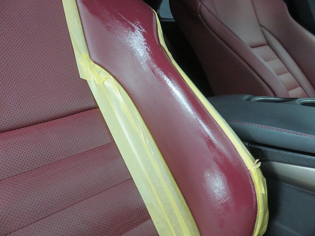 レクサス赤革シート各部補修塗装のご依頼になります。