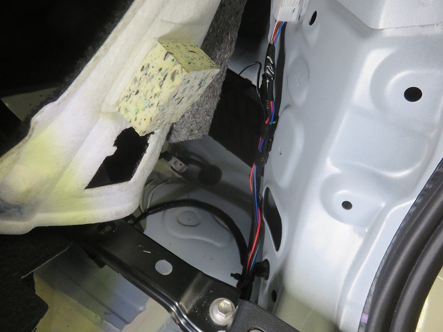 丁寧に配線加工。リヤバンパーを外す時困らないように接続端子取付。