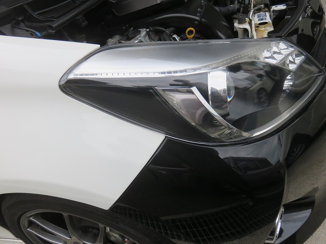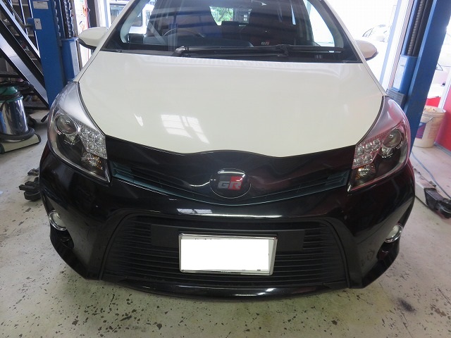 ヴィッツ各部立て付け調整 フロントグリル塗装 バンパー下がり修理のご依頼になります。