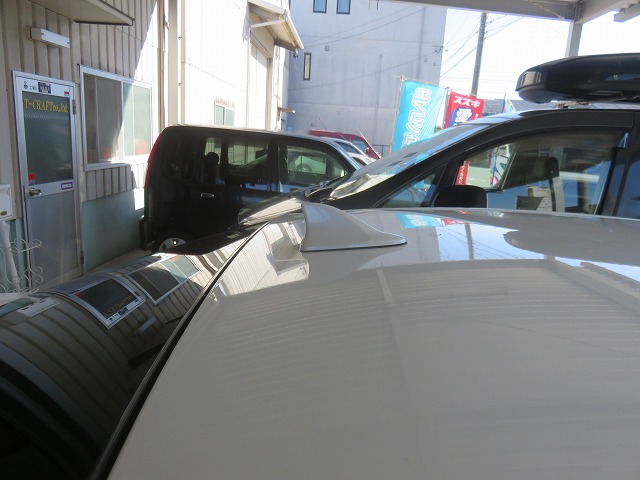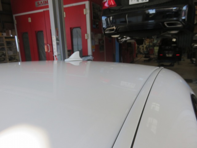 180マジェスタ 200系後期アンテナ加工品取付になります。事前に200系クラウン前期用後期純正シャークアンテナ加工品をご依頼頂き完成後ご予約ご来店。岐阜県からお越しくださいました。