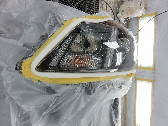 オーナー様はヘッドランプレンズ部のクリアー劣化の為ヘッドランプクリアー塗装を他店でお願いしたものの納得がいかなかったようで、当店で修理を依頼されました。