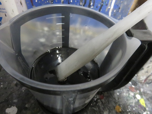 ヘッドランプ専用クリアーの品質に影響が出ない程度にほんの少量ブラックを入れます。