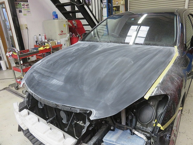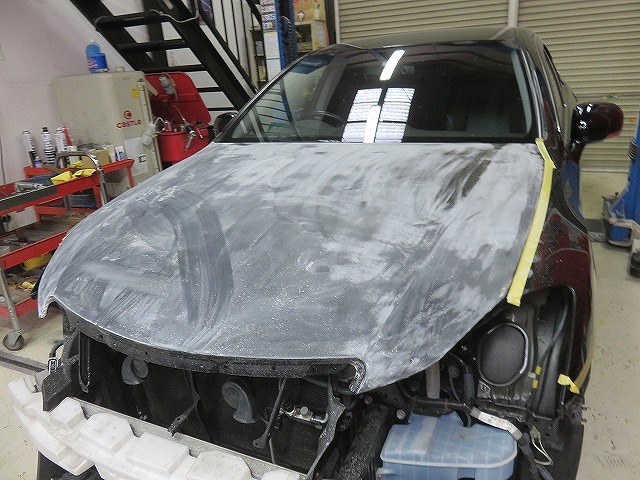 次にボンネット修理。塗装肌・ブツ等の調整。