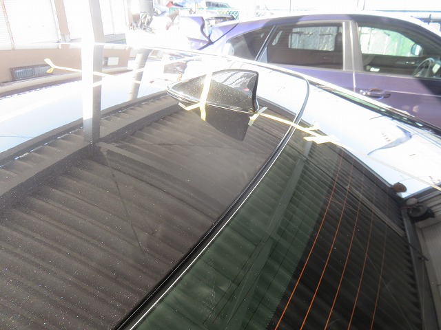 ダミーアンテナ取付カ所に、付属のプライマー(両面テープの接着力促進剤)を塗布。コーティング施工車でしたのでプライマーが弾きました。その場合はコンパウンドでコーティングを剥離後プライマーを塗布して頂ければ、弾きません。