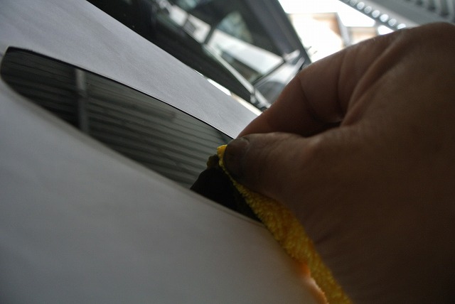 コーティング施工車はプライマーがはじいてしまいますので、コンパウンドで、ルーフアンテナ取付座面のコーティング層を付属のコンパウンドで剥離。