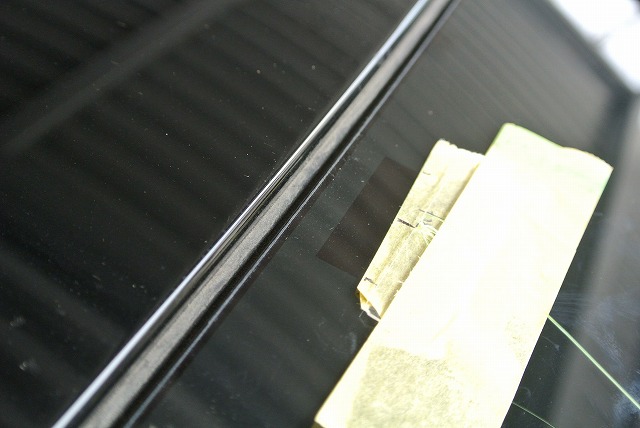 こちらが210クラウンのリヤ硝子。中央に熱線が縦に走っております。車両の中心がわかりやすいですね