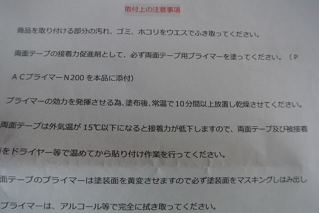 取付時の注意事項の詳細も付属。