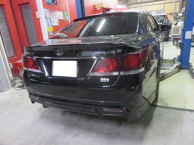 210クラウン前期ハイブリットにモデリスタ210後期用リヤスポイラー取付のご依頼になります。