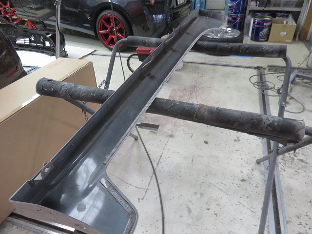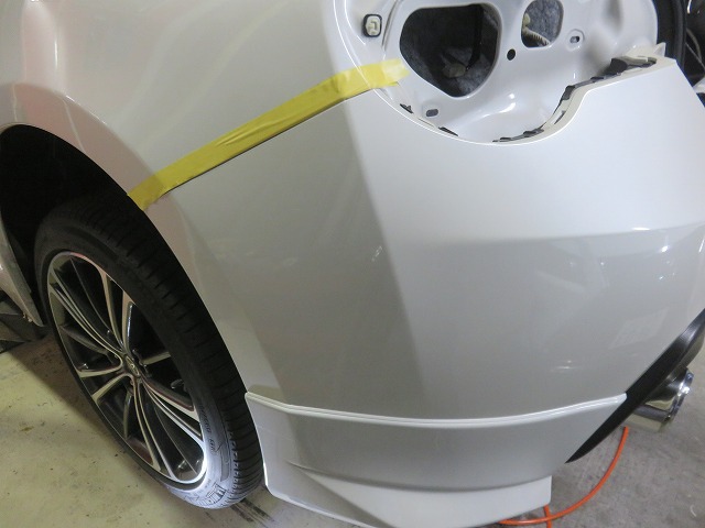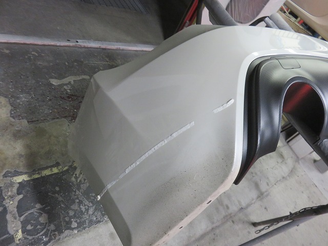 リヤバンパースポイラー位置決め その後リヤバンパースポイラーを外し、プライマー塗布後