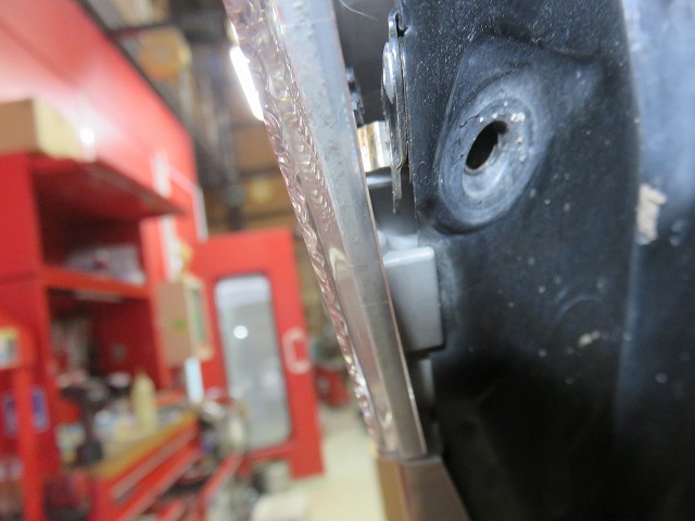 そして補強ステー取付。 ステンレスステー光沢仕上げ。 地味にグラインダーで白棒&フェルトで仕上げてあります。