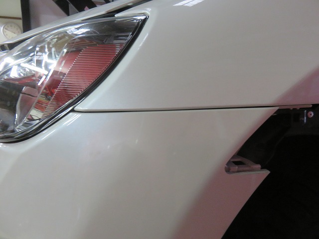 最初よりも隙間は狭まりました。フロントバンパーのガタはほぼなくなりました。簡易修正ですが、効果あります。更にピッチリ隙間を無くしたい方は、別途作業になります。オーナー様の選択でご依頼くださいませ。