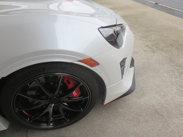 フロントバンパー後期仕様、TRDハーフスポイラー、デイライトがさりげない。ヘッドランプ下グリルに、ウインカーランプインストールそれらの物(既施工)がフロントバンパー下がりが解消されただけで、更に豪華に際立つ・・・・。