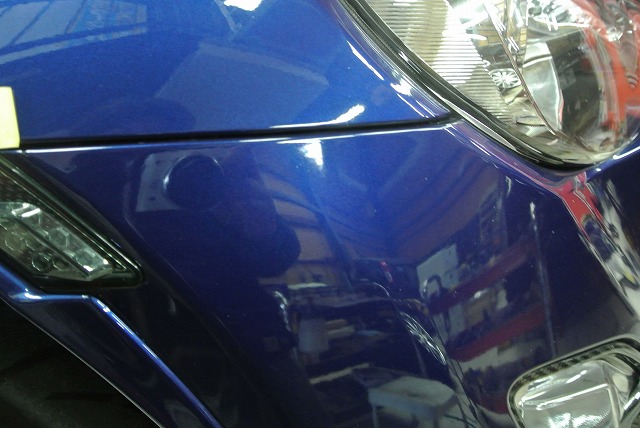 フロントバンパー下がり追加対策修理のご依頼になります。補強ブラケット取付。フロントバンパー両サイド上部(ウインカーランプ内)クリップ部ボルトナット変更。サイドブラケット加工、コーナーブラケット加工、バンパー側両サイド取付部固定、フロントバンパー下部中央部ボルト3箇所のナット下にワッシャー追加になります。フェンダープレス部再調整