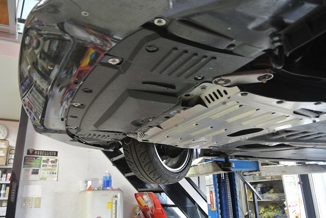 バンパー下部中央3箇所ボルトナット部バンパーカバーLWRの局部変形を抑えるためにナット下に20mmのワッシャー追加。