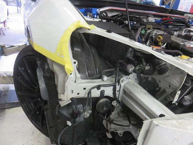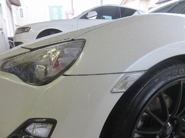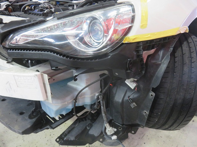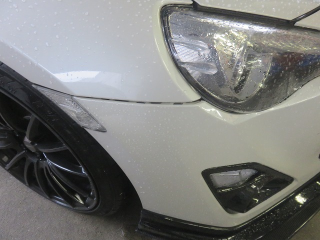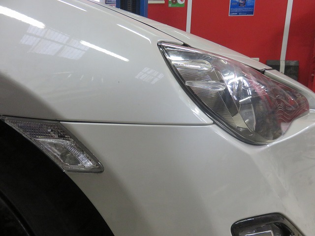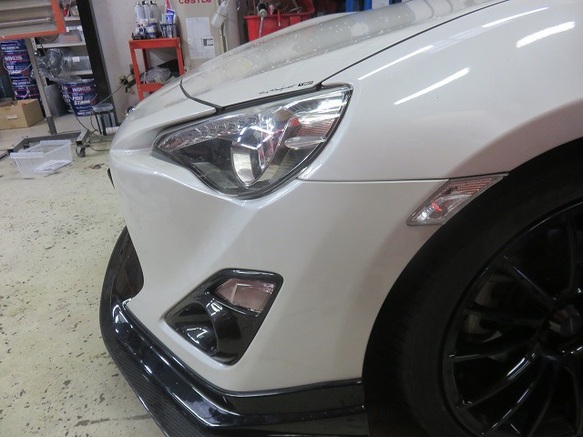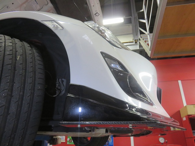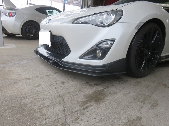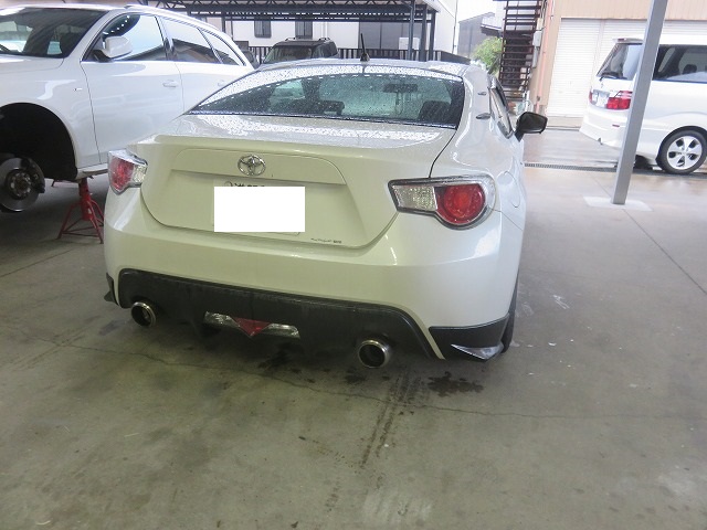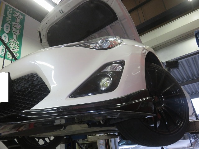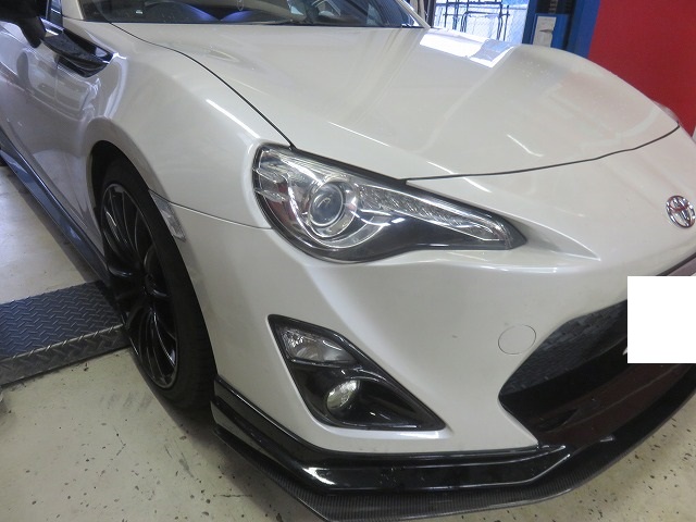86 フロントアンダースポイラー・ディフューザー付きフロントバンパー下がり修理のご依頼でございます。滋賀県からお越しくださいました。