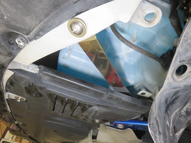 為の補強パーツ。効果はあると思います。ティークラフトはフロントバンパー取り付け部とコーナーブラケットの爪が乗り越えてしまう応力ははどこから発生するのか、また応力をかからないようにするにはどうしたらいいかということを考えました。