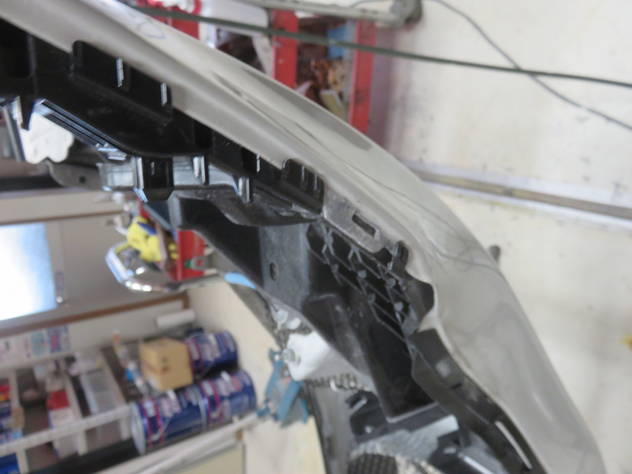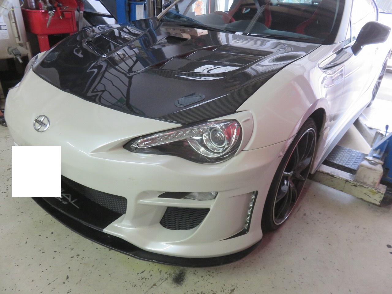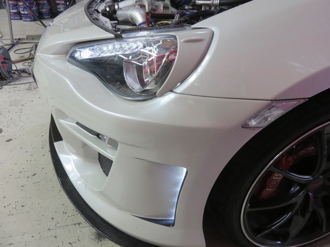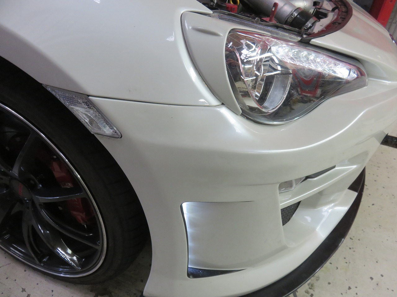 86 フロントエアロバンパー立て付け バンパー下がり加工 修理のご依頼でございます。