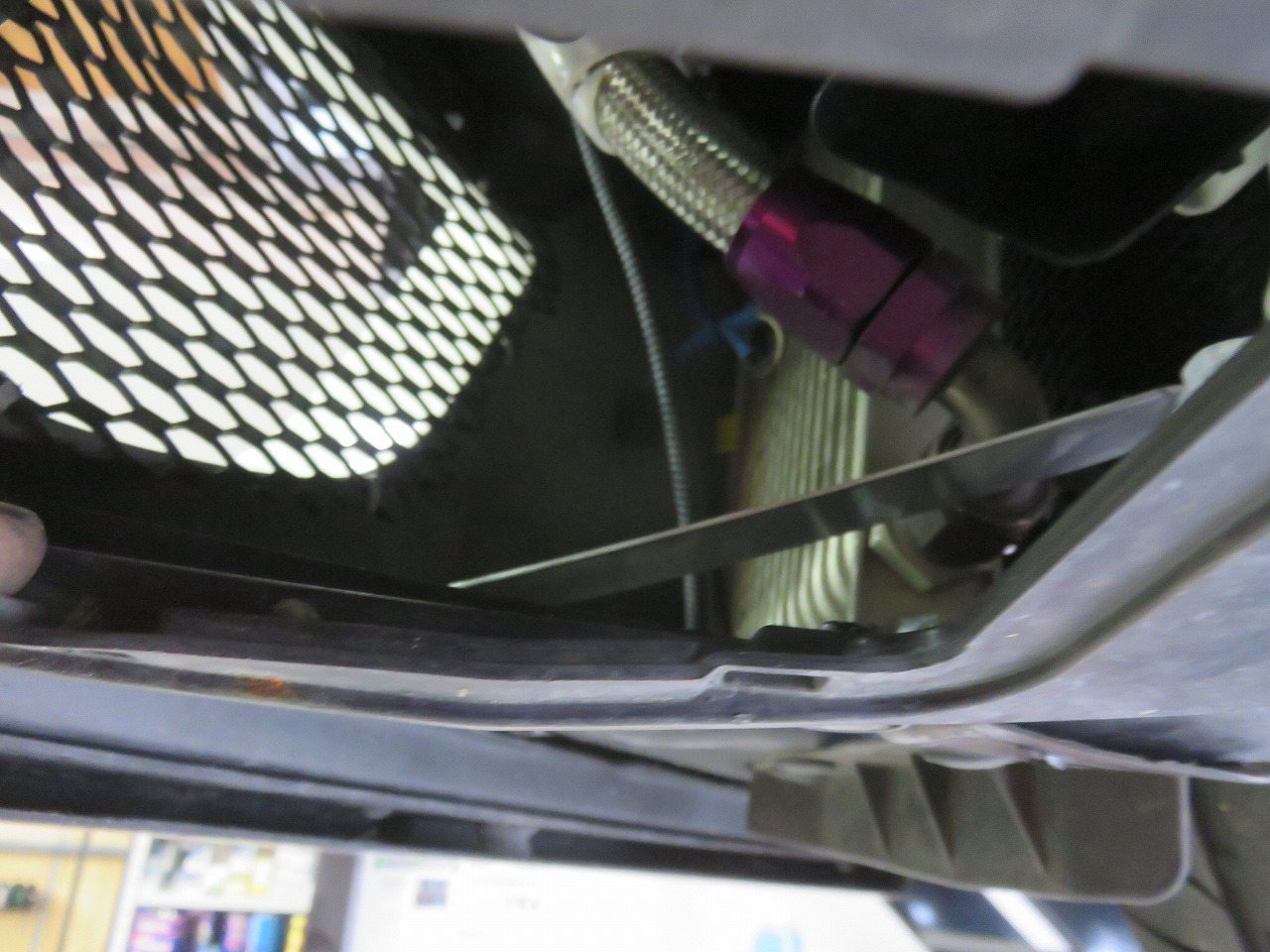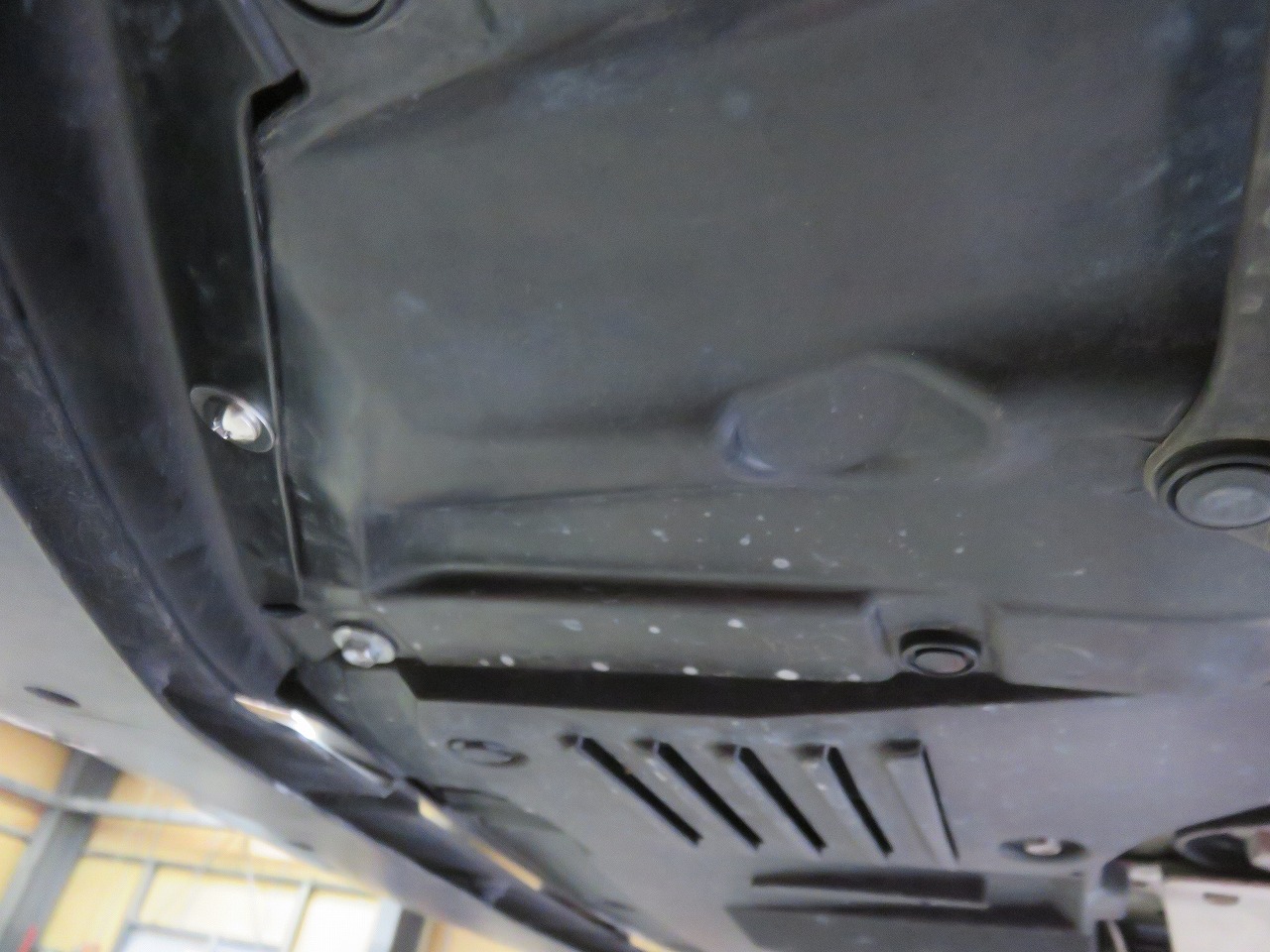 トライアルさんエアロパーツ下側取付部左右ライナー止め。中央部取付部無し状態。中央部ステー作成もご提案致しましたが、諸事情により断念。