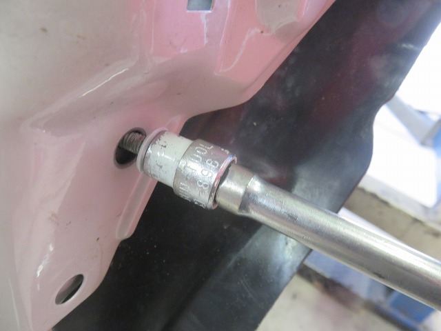 フェンダーボルトの塗装欠け防止キャップとソケットで丁寧にフェンダー取付ボルトを外します。