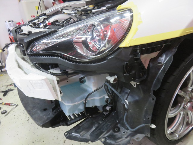 フロントバンパー勘合部外れないのでブラケットのボルト緩めて・・・・。
