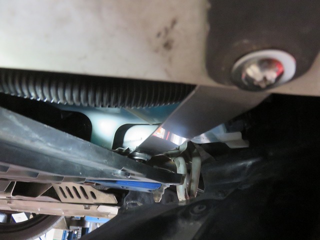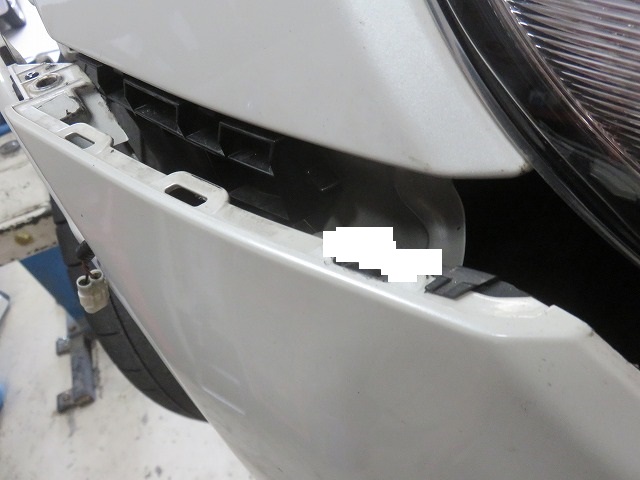 対策その他。クリップ取付部穴を利用しボルト・ワッシャー・ナットにて固定。バンパーとフェンダーをボルトナット固定。(画像は取付途中)